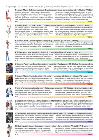 | Das Seminar ist überwiegend sehr praktisch aufgebaut | Erfassungsbogen zur Bewertung der Innenweltarbeit von Synergetik Therapeuten aus der Anfangszeit | Fragebogen zu Chakrenqualitäten 2005 | Fragebogen-Auswertung-Diagramme Kranke Menschen profitierten am stärksten von der Innenweltarbeit. |