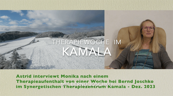 30 Jahre Synergetisches Therapiezentrum Kamala: 1982 - 2012 Ein Film von Bernd Joschko - 20 min Mit Selbsterfahrungsgruppen 1979 fing alles an. Lebendigkeit und Freiheit von alten Vorstellungen war die neue Richtung. Meditation und ganzheitliche Gesundheit waren ebenfalls neue Begriffe. Immer mehr kranke Menschen suchten in alternativen Methoden ergänzungen zur Schulmedizin, die nur den Körper beachtet. Bernd Joschko begründete